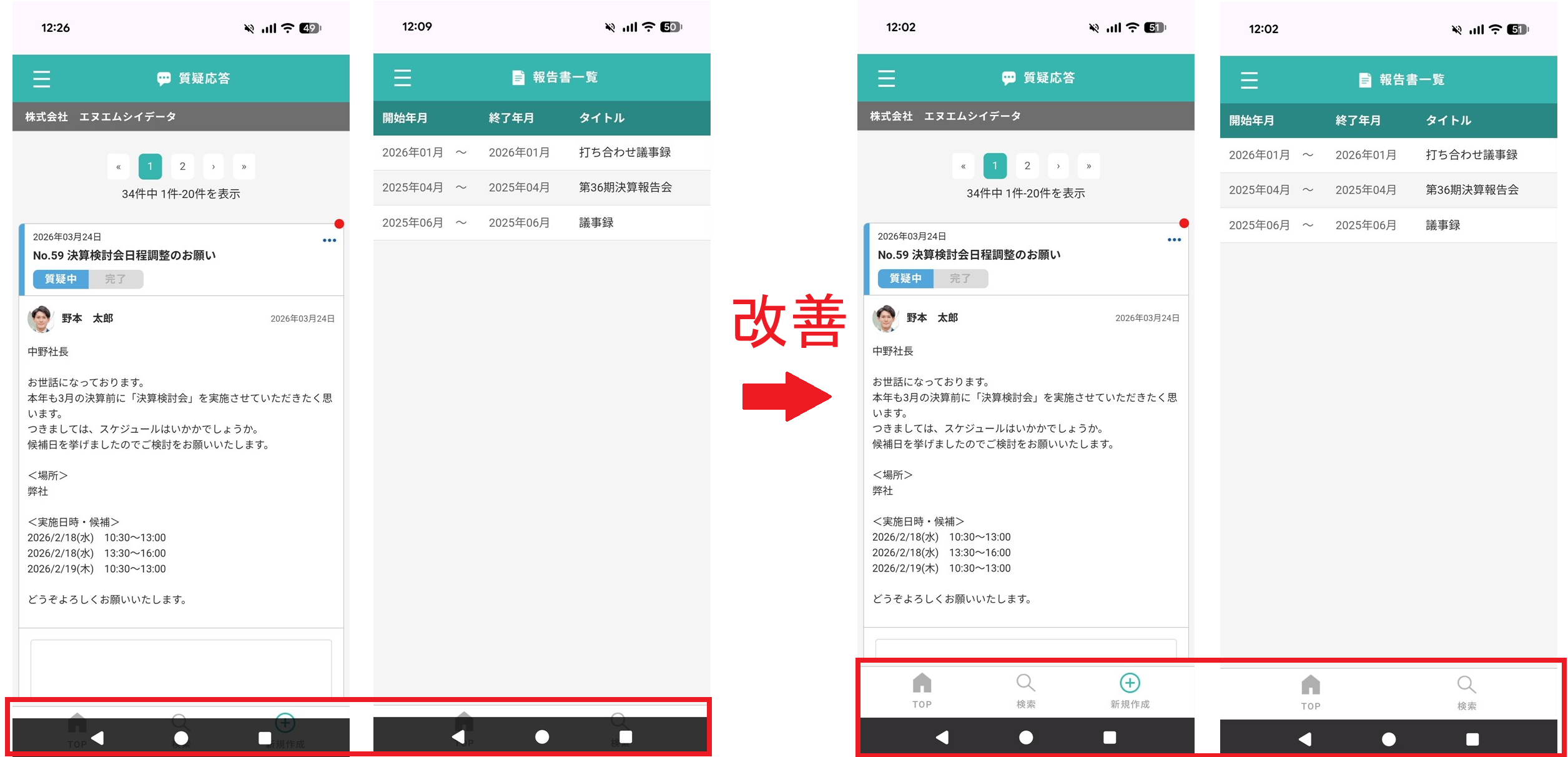 Android機のナビゲーションモードが「3ボタンナビゲーション」の場合に、質疑応答および報告書画面においてメニューボタンが重なって表示される現象を改善します。 |